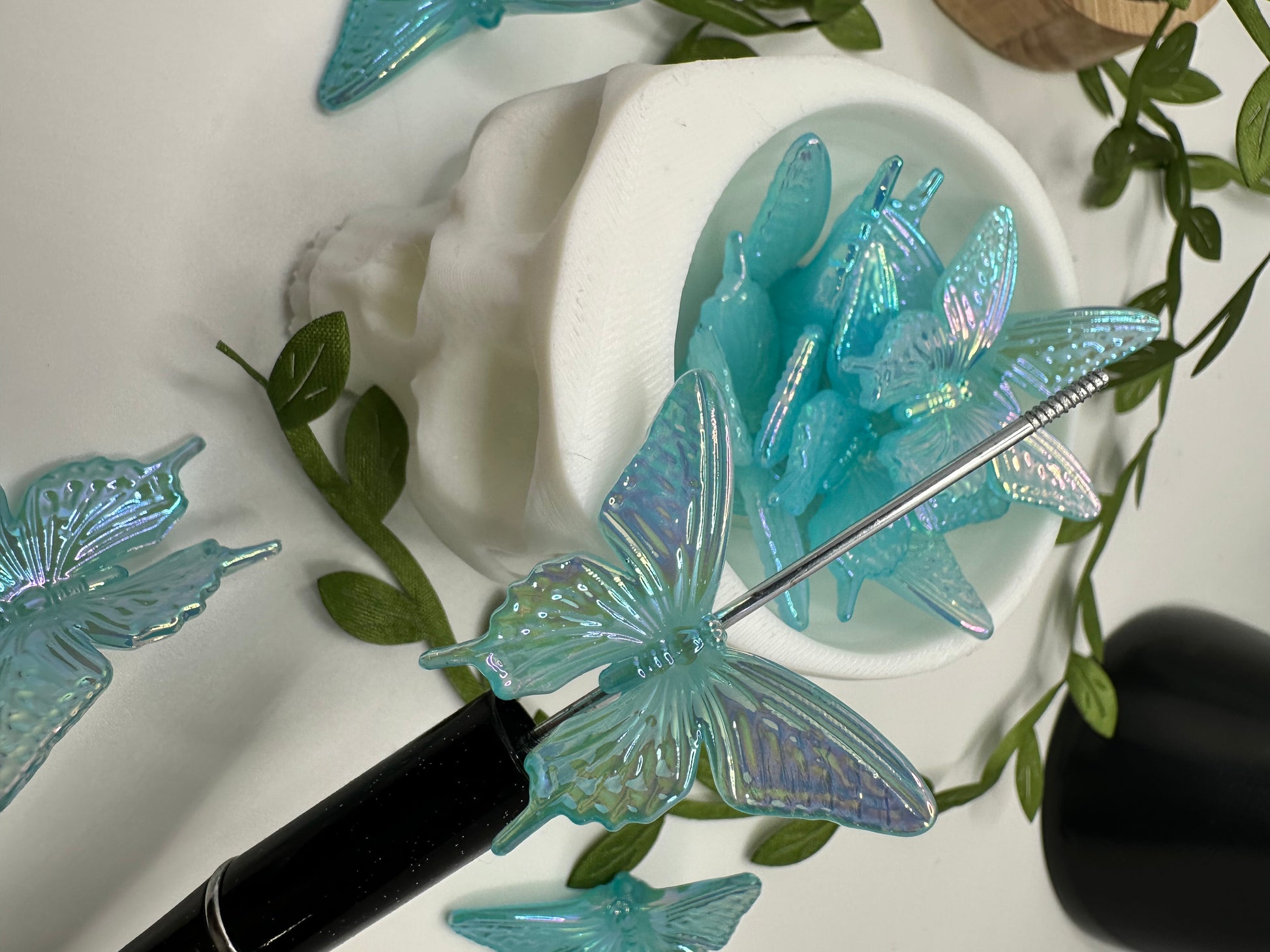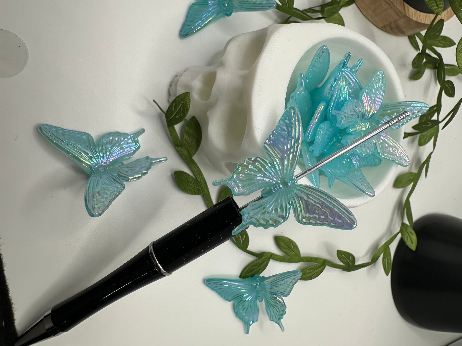 Butterfly Blue bead, acrylic beads for pens, beading supplies, beading, 32.5mm, beads for keychain 2pc This is not a pen topper. This listing is for 2pc butterfly beads.