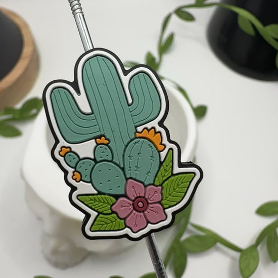 Cactus with flower focal bead, silicone bead, silicone bead for pens, crafting beads, supplies, focal, silicone supply bead 32.5mm