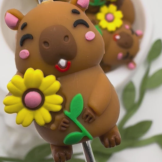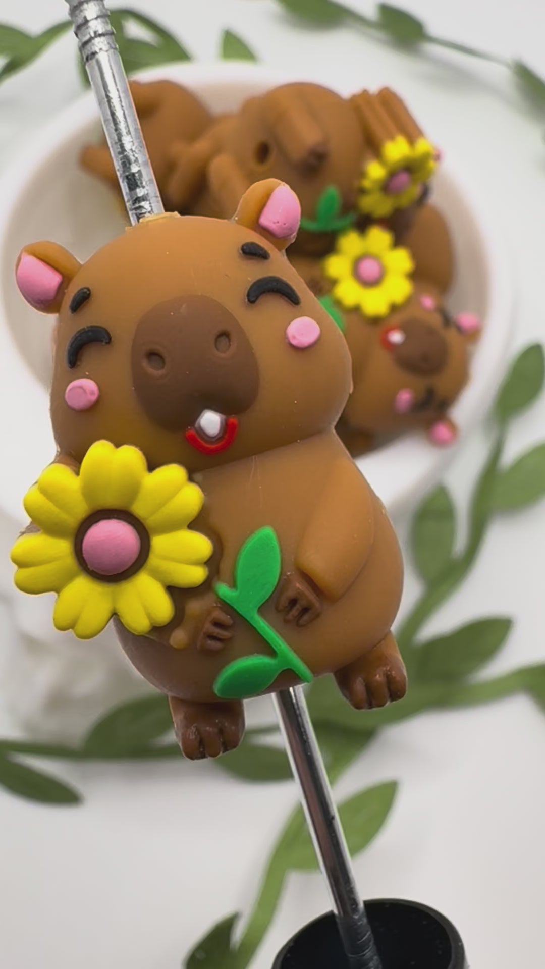 Capybara bead 3d, cute silicone bead, beads for pens, printed silicone bead, focal bead, 26.5mm, 1pc