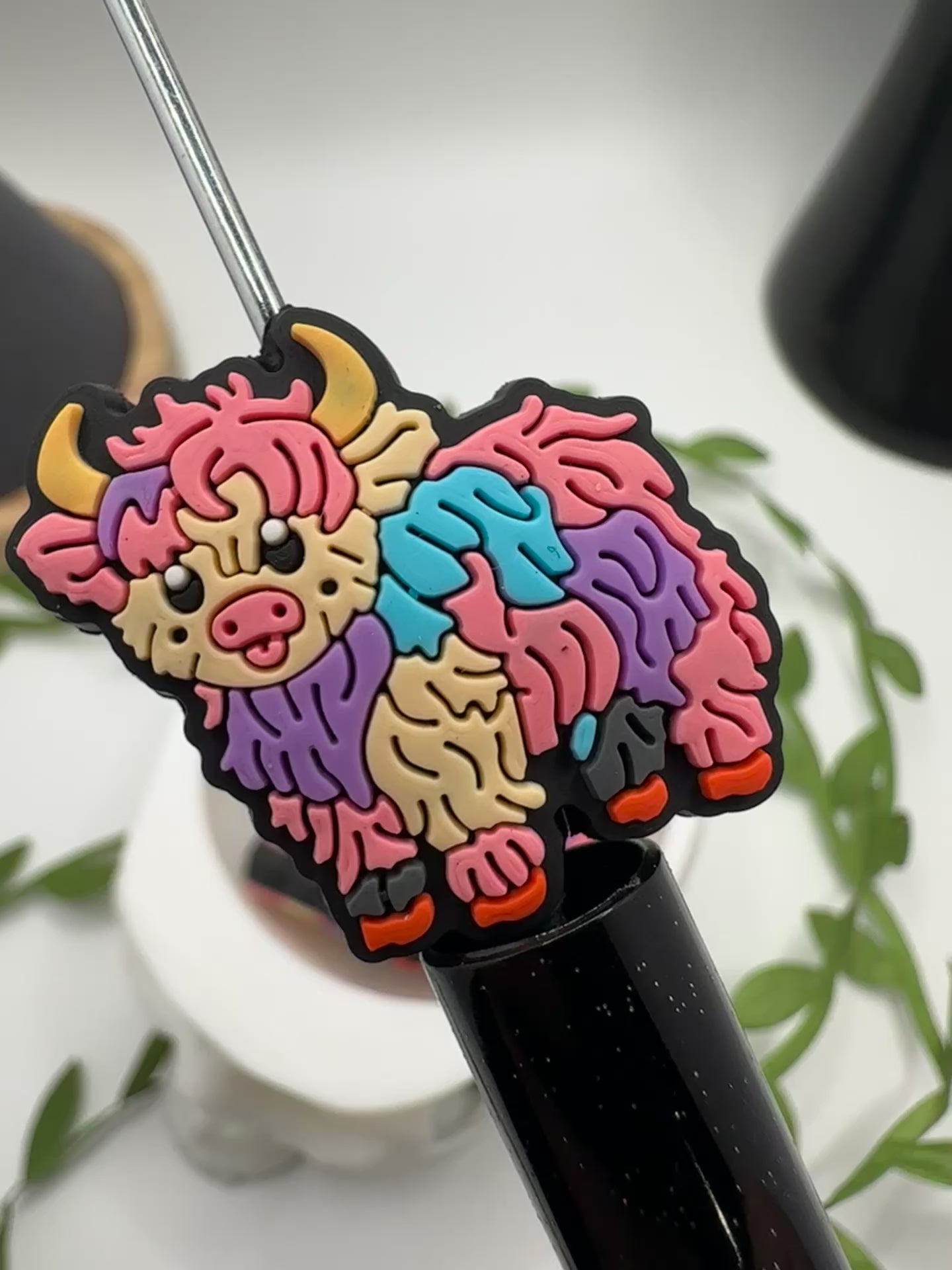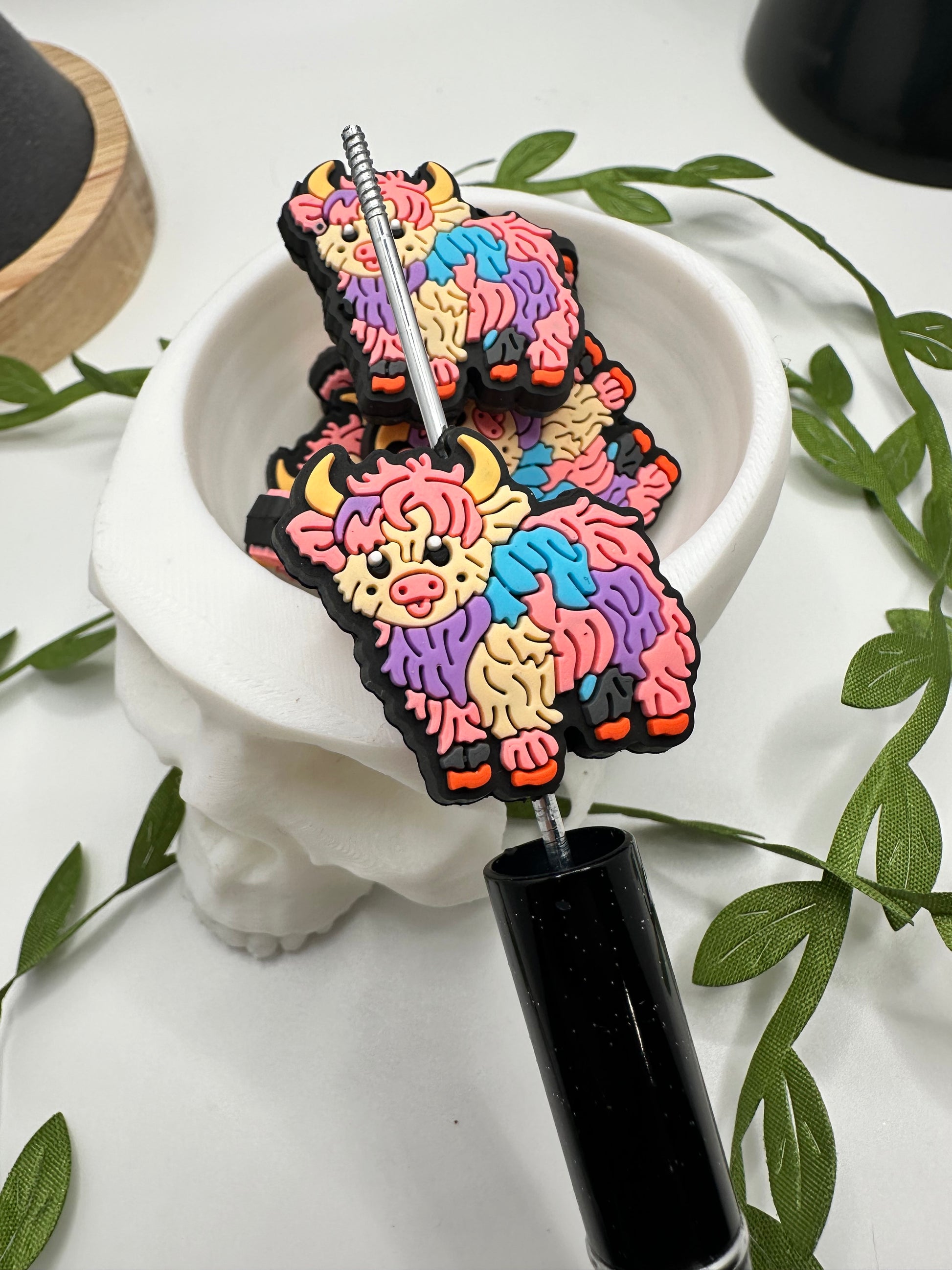 Colorful Cow bead for pens, crafting beads, supplies, focal, silicone bead, silicone for beadable items, beadable supplies 1pc 28.5mm
