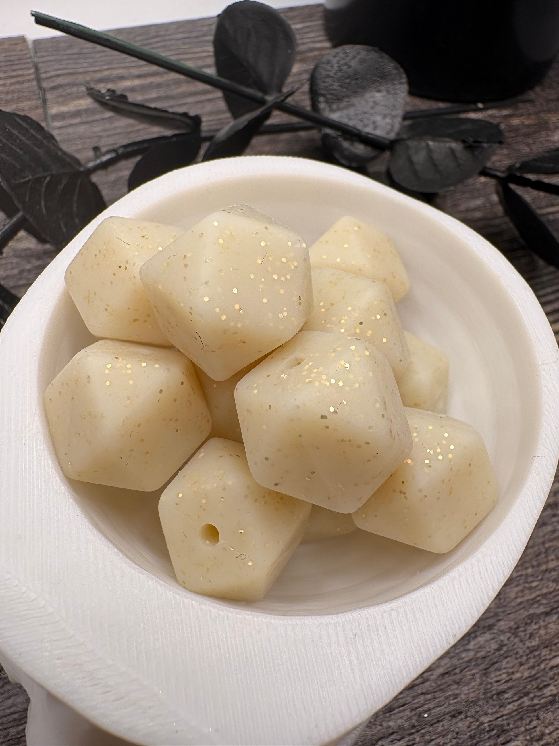 Gold nude hexagon glitter bead, 14.5mm beads for pens, beading supplies, pvc silicone beads