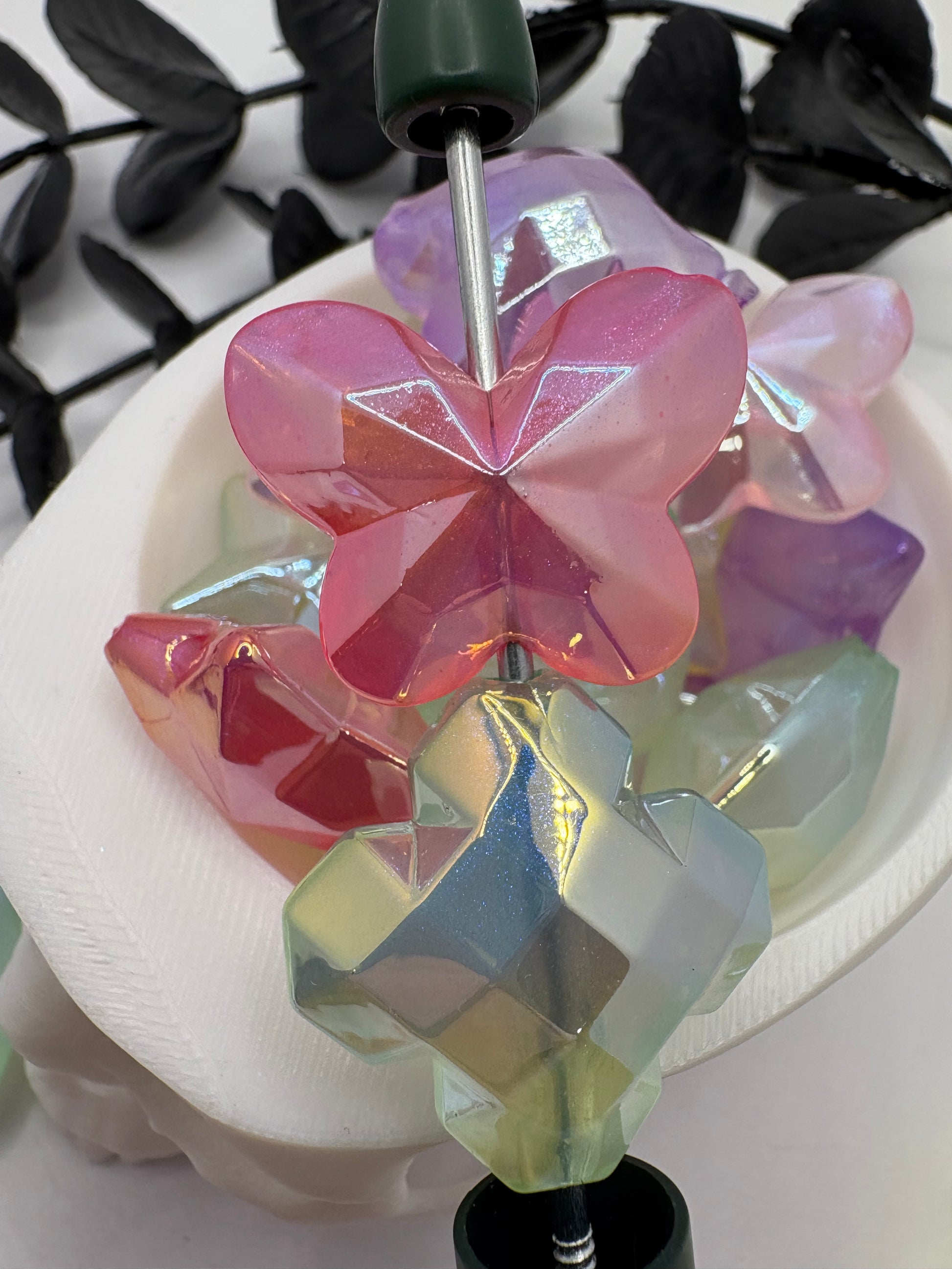 Iridescent multicolor star bead, acrylic 21mm beads for pens, beading supplies, beading, 5pc bag