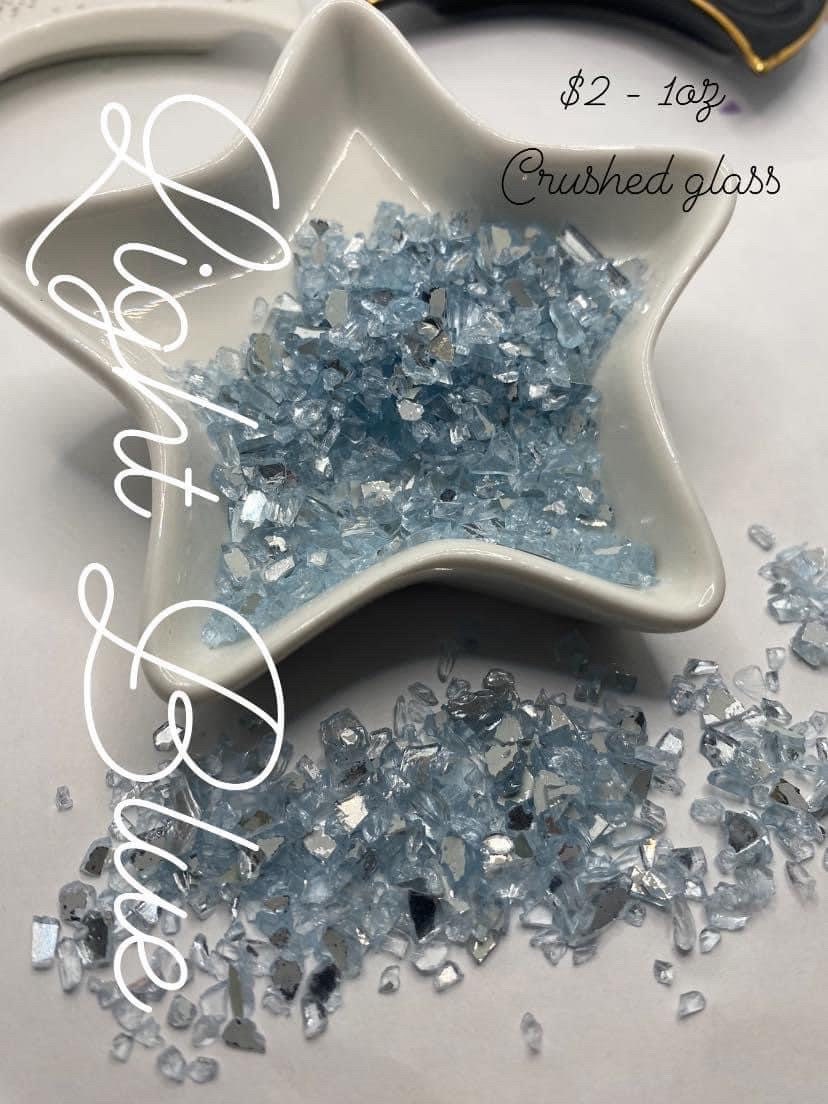 lt. Blue glass chips, resin fillers, candle making supplies 1oz by weight, colored crushed glass crafting