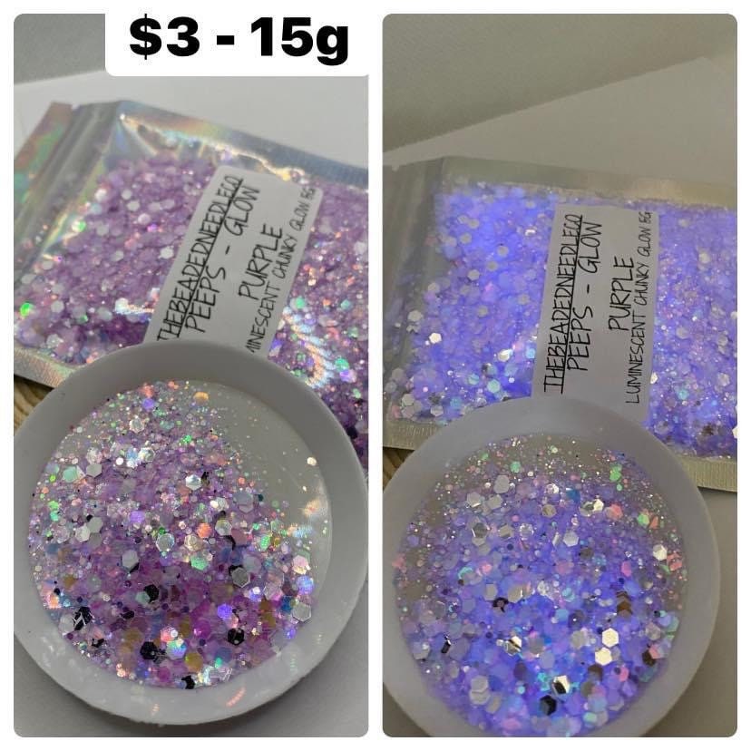 Peeps purple -GLOW: glow chunky glitter mix, crafting supplies glitter, custom mix, resin supplies, resin glitter, mix holo glitter 15g