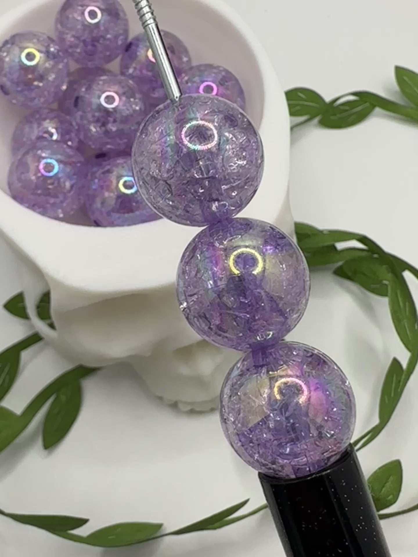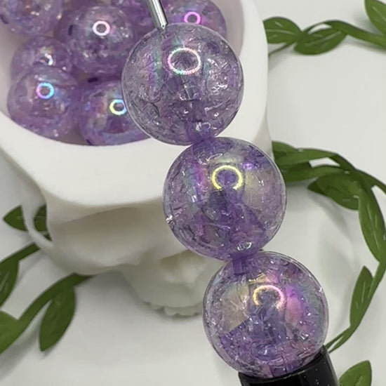 Purple Crackle bubblegum bead, acrylic 15.5mm beads for pens, beading supplies, beading, crackle effect