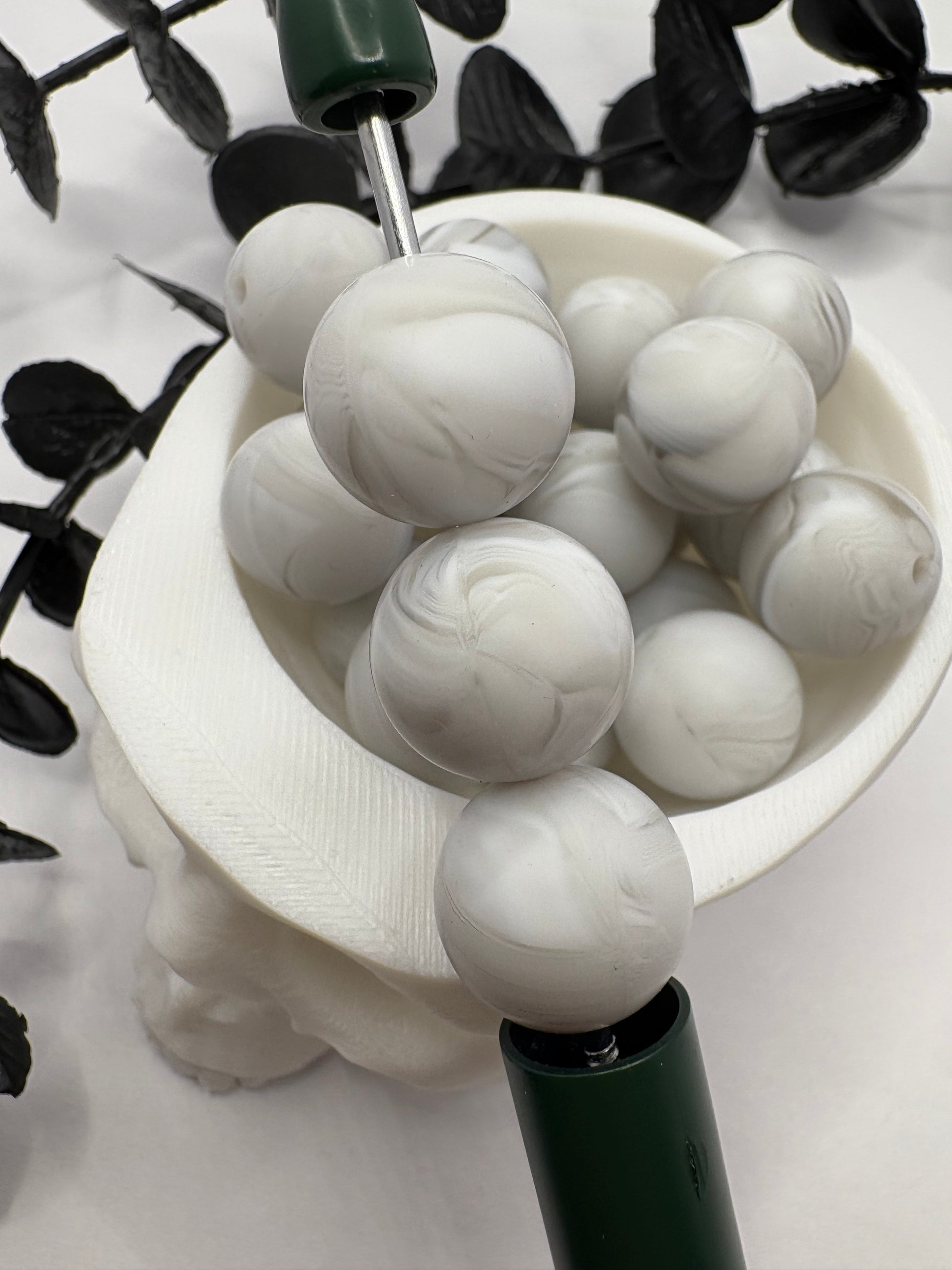 Silicone Grey Marble bead, 15mm beads for pens, beading supplies, beading, pvc silicone beads