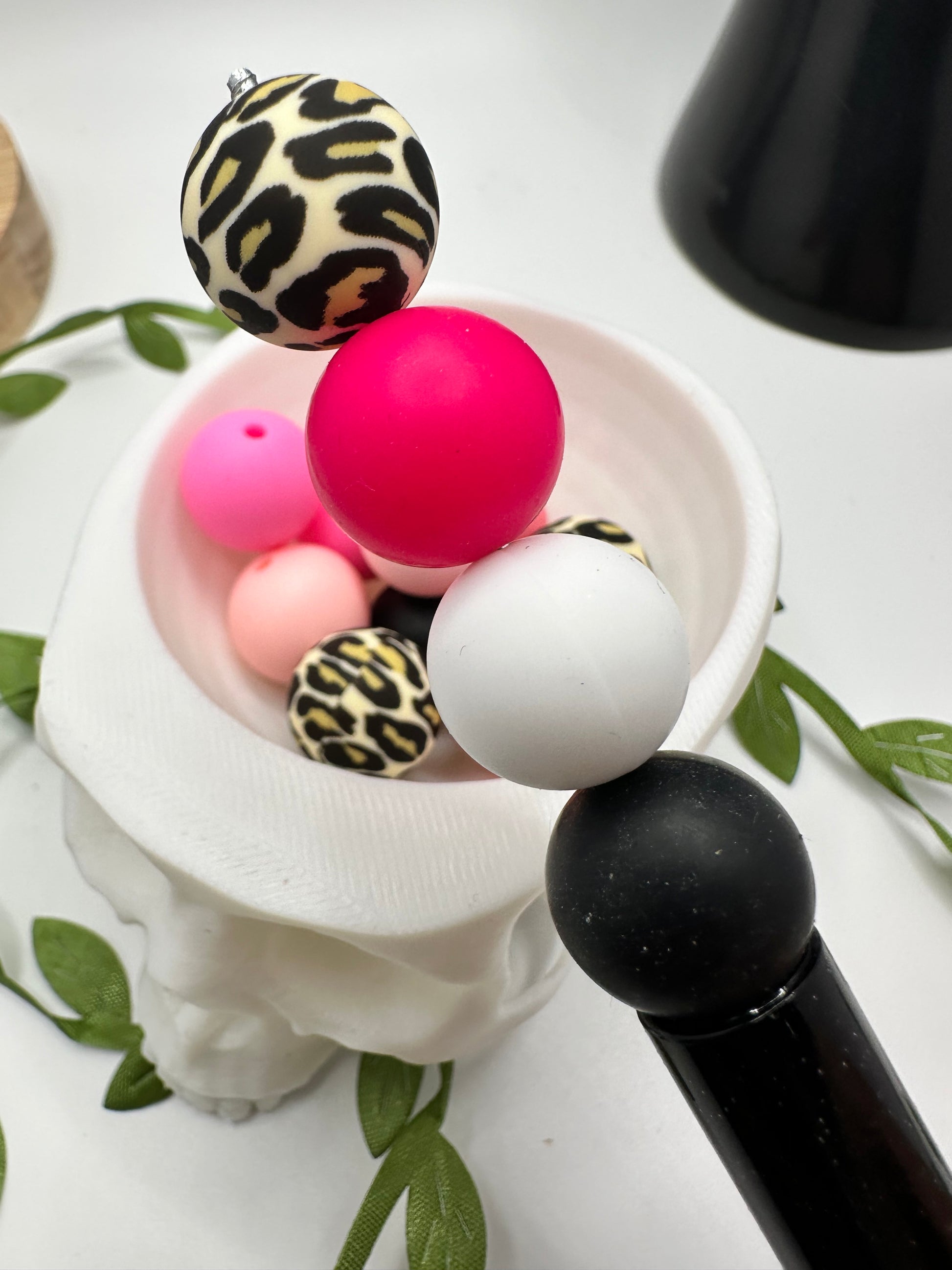 Silicone mixed printed bead, 15mm beads for pens, beading supplies, beading, Sassy 10pc