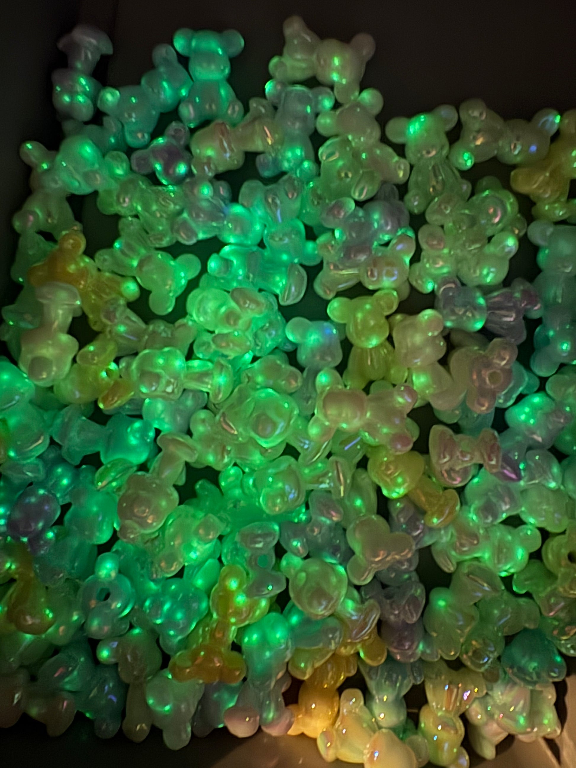 UV star glow mini pastel bear beads, color mix 5pc, 24mm, star speckled glow, 2.5mm hole