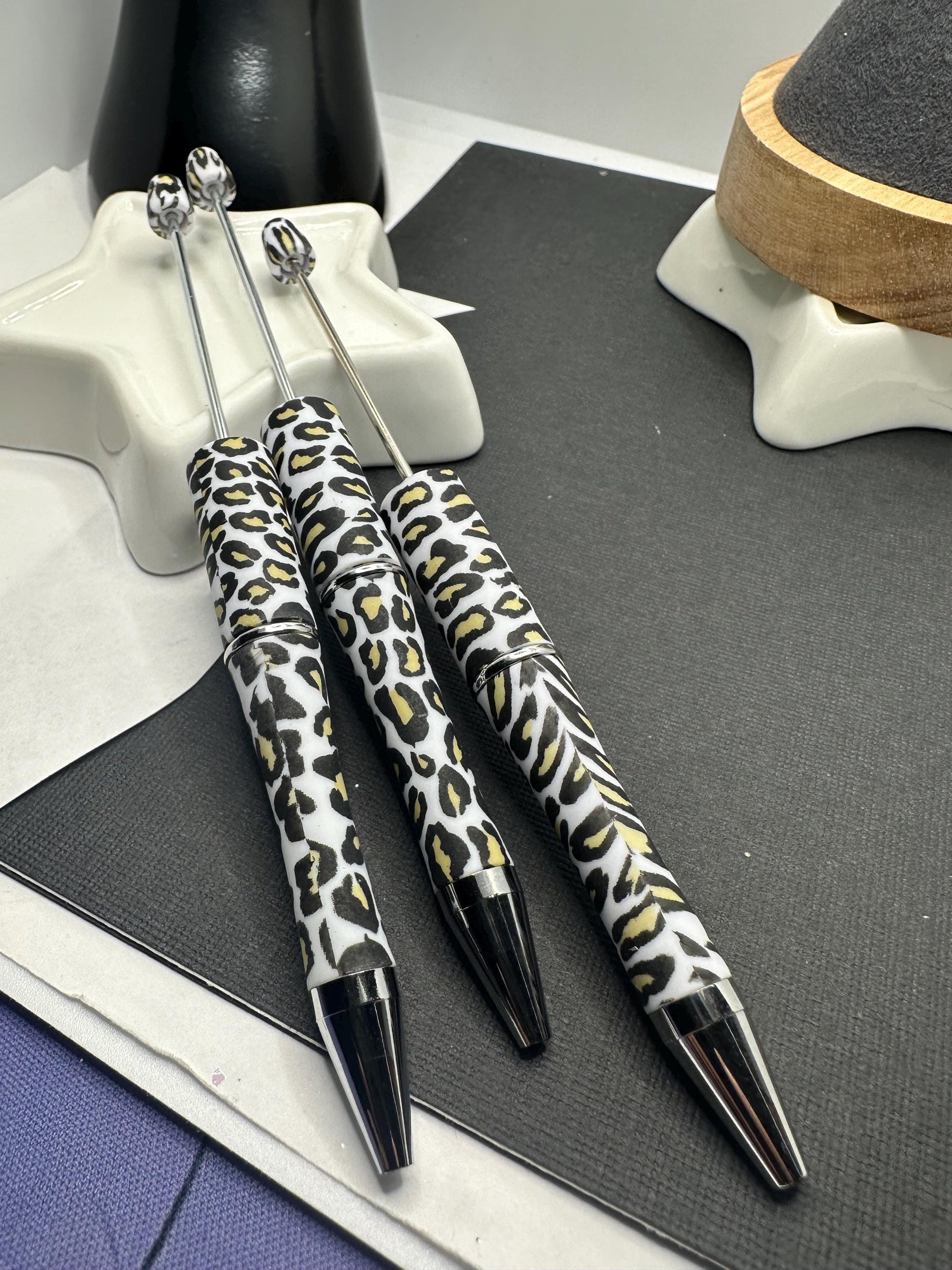 White Cheetah print, Beadable pen blank, black ink, pen for silicone beads, for acrylic beads, pens for crafting, beadable blanks supplies